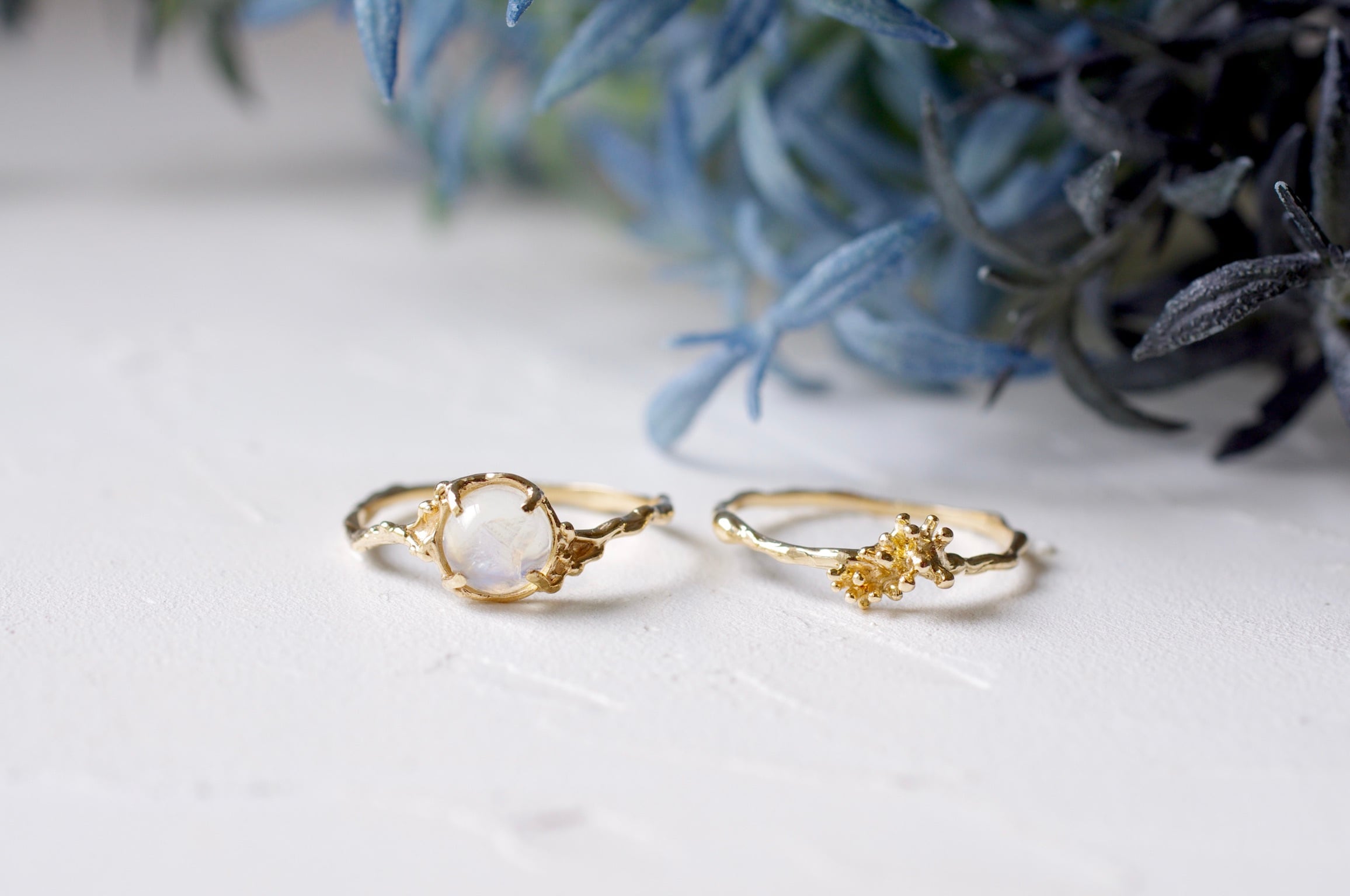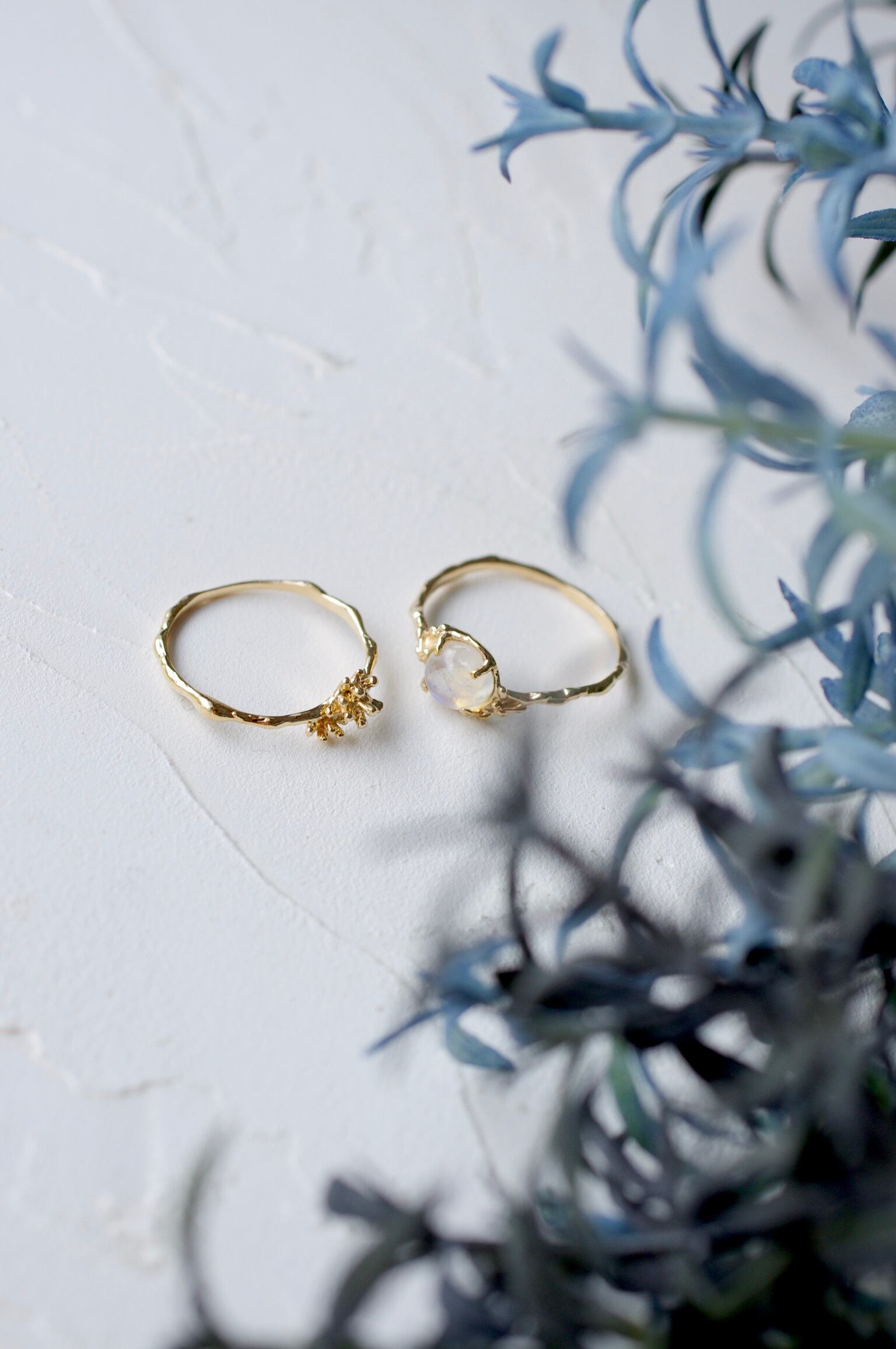 小さな星くずのように輝く、ツノホコリという粘菌をモチーフにしたリング。