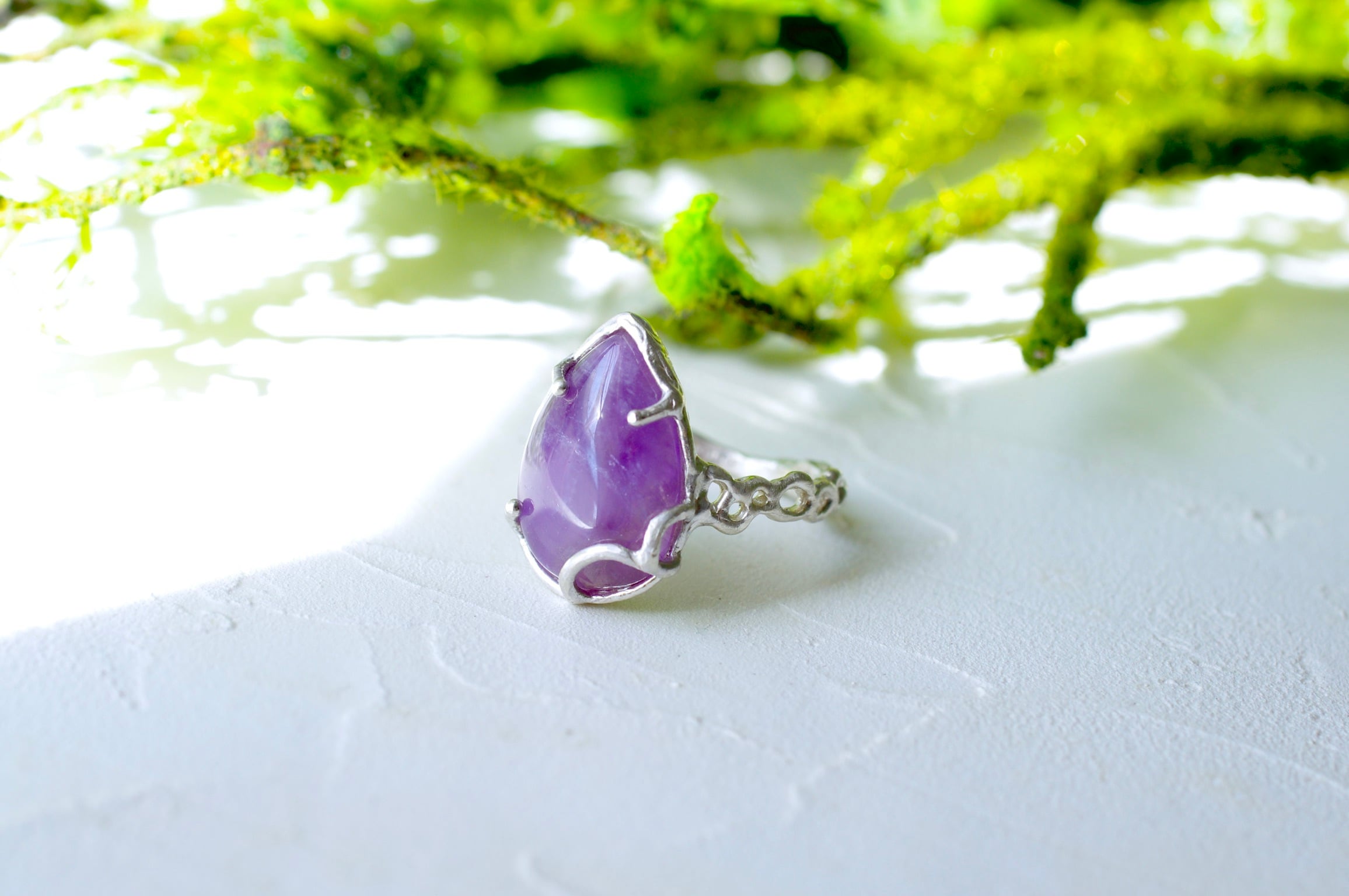 深みのある紫色が印象的なアメジストを使用し、