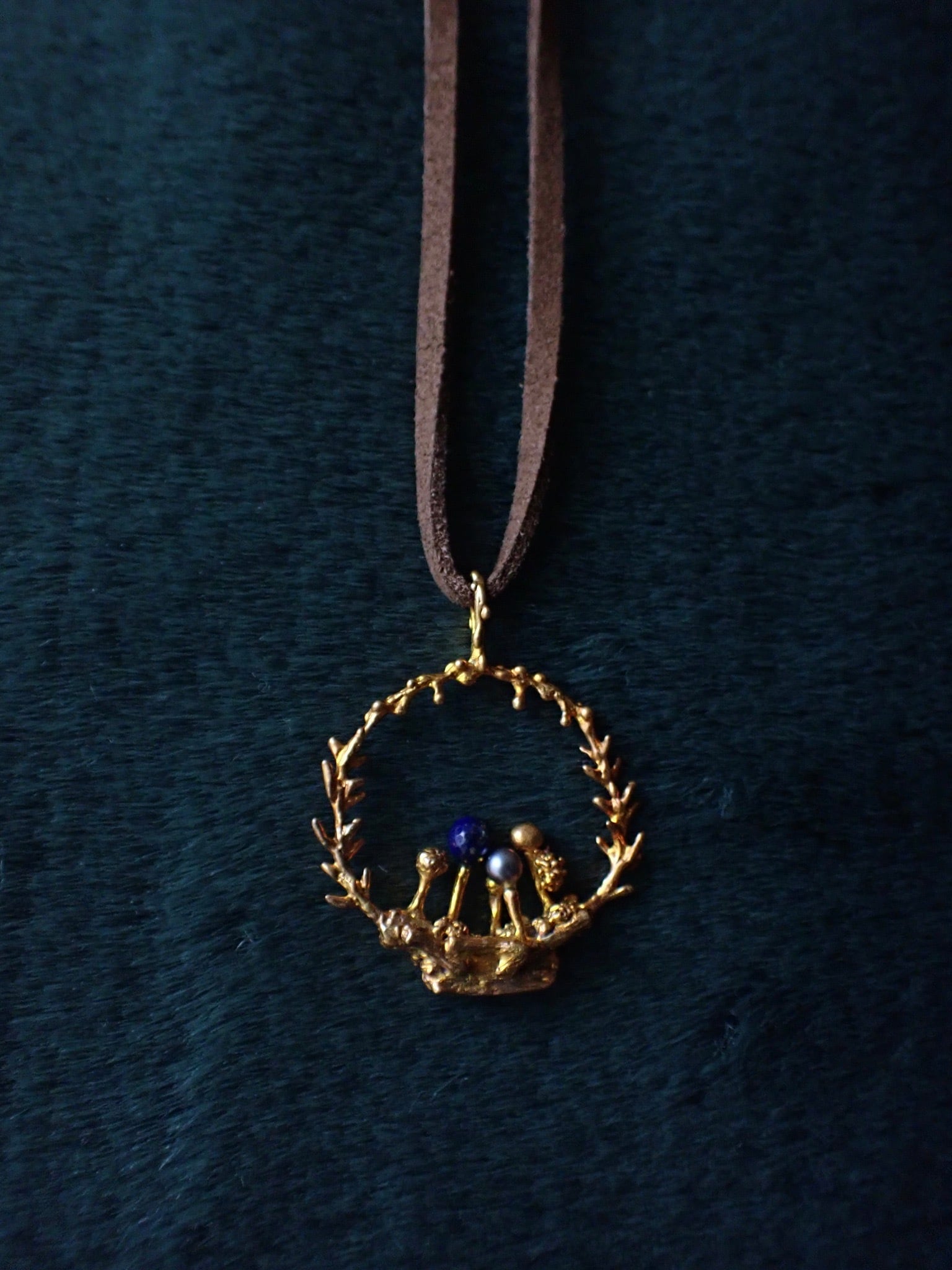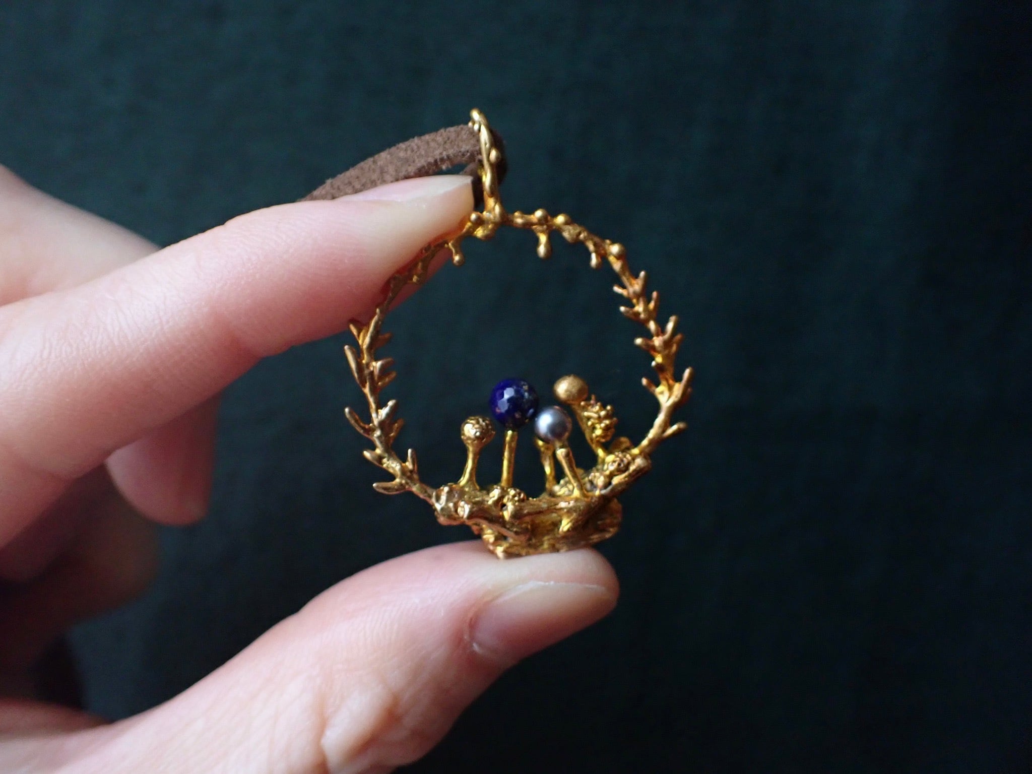互いに影響し合いながら生きる小さな生命たちの関係性をそっと映したペンダント。