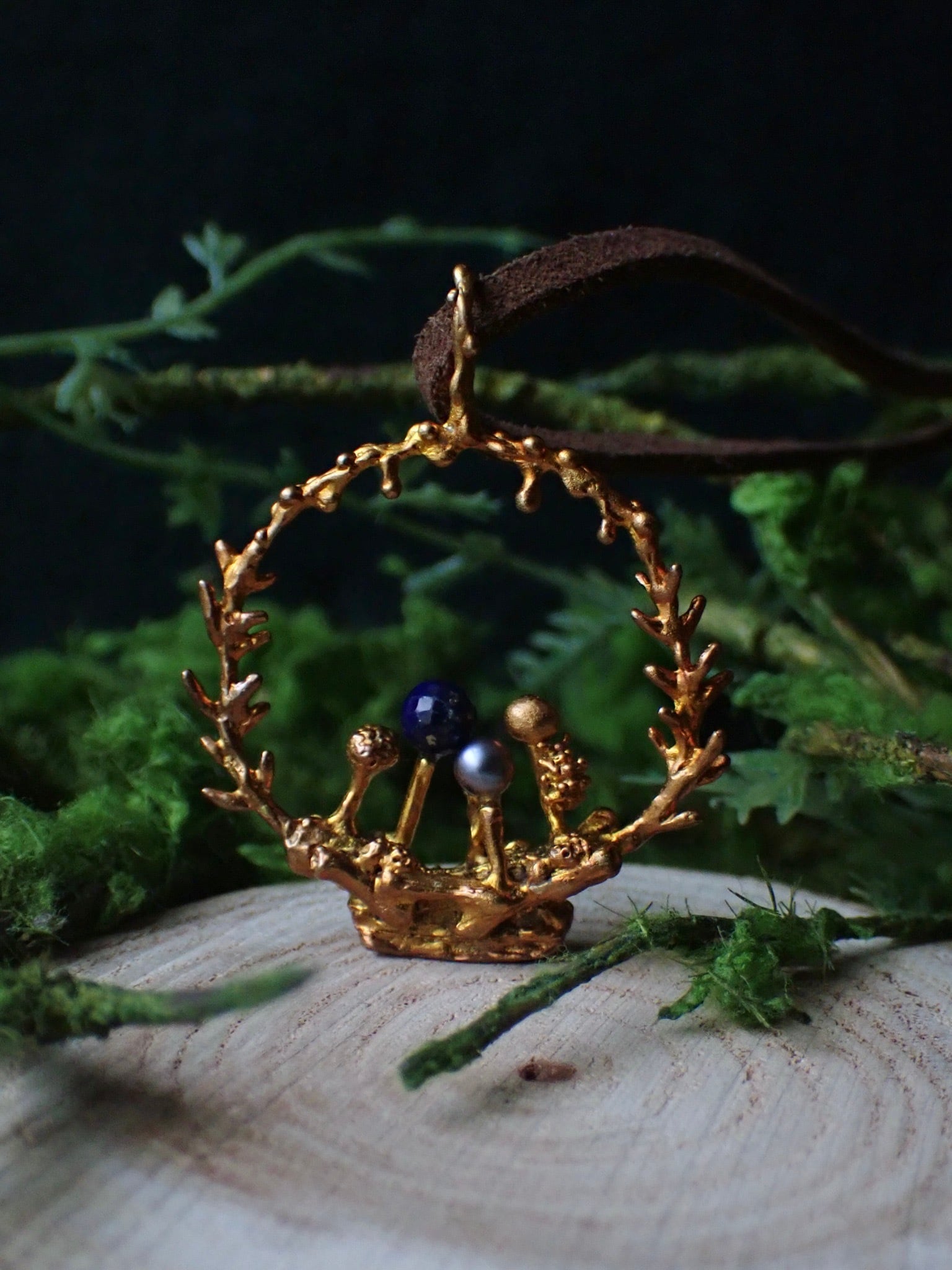 身につけることで、森の奥に広がる小さな生態系を感じていただけたら嬉しいです。