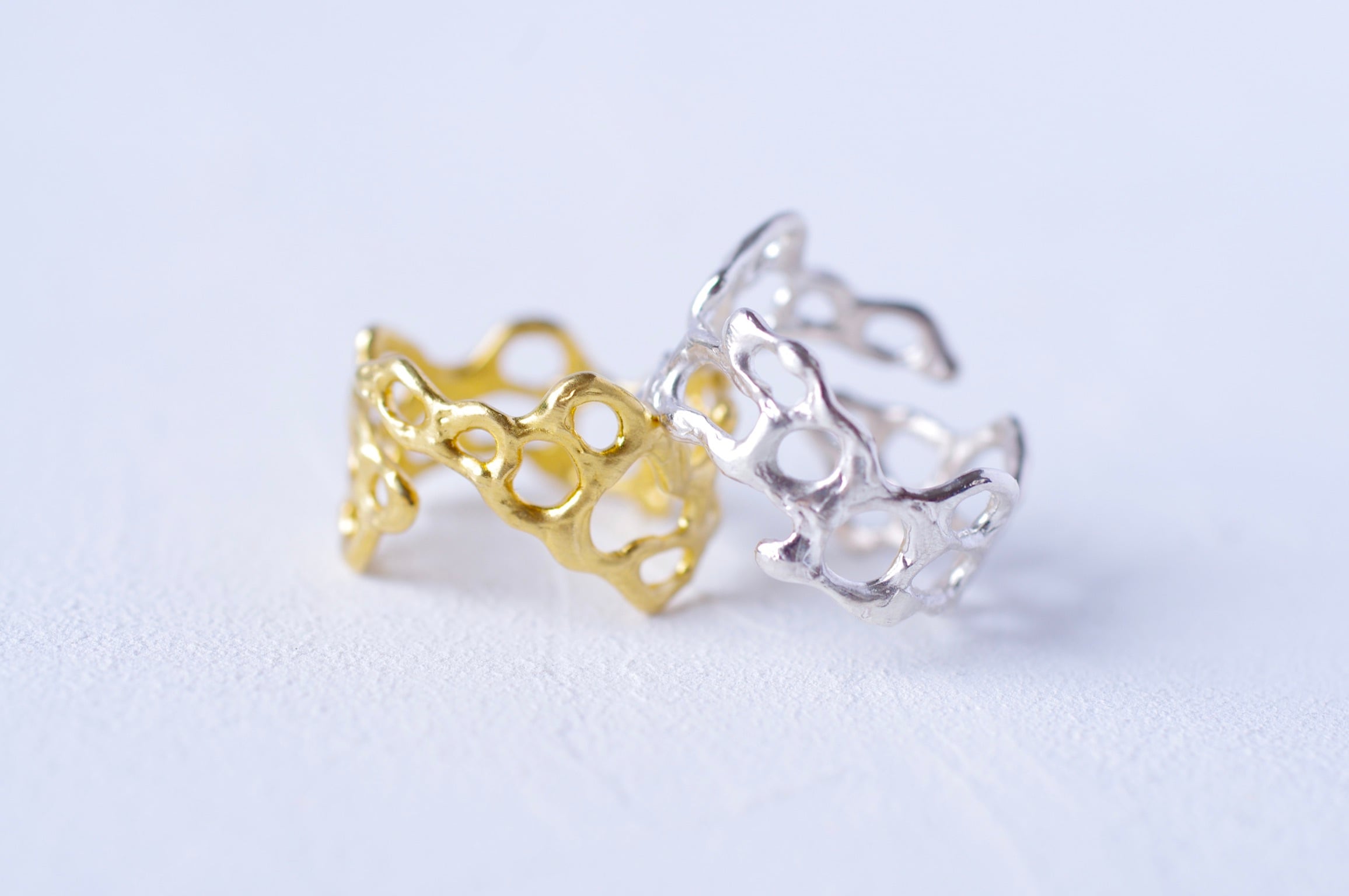 網目模様(meshメッシュ)の細胞のようなデザインのリングです。