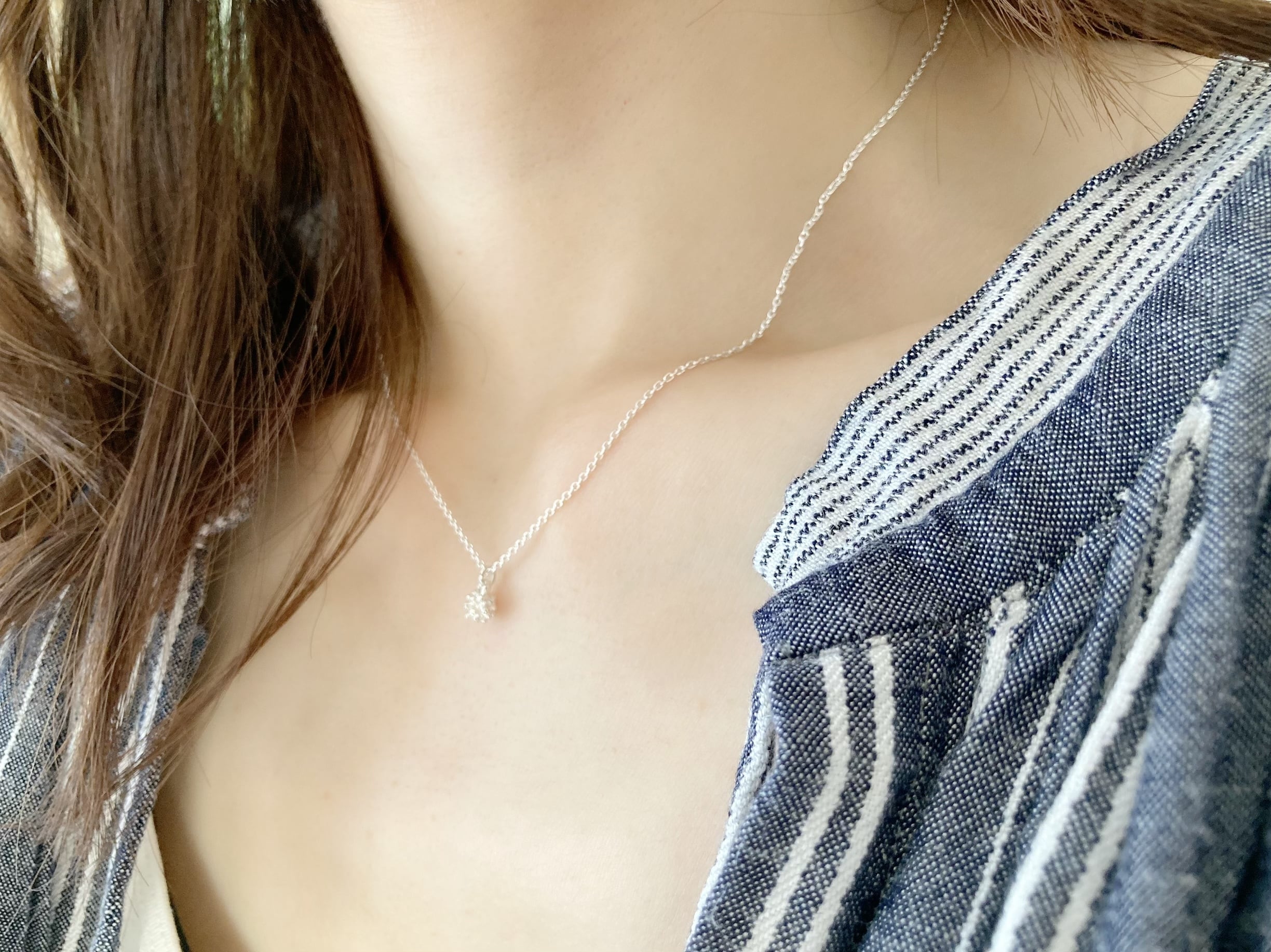 小粒でコーデの邪魔をしない、使い勝手の良いシンプルなプチネックレス。