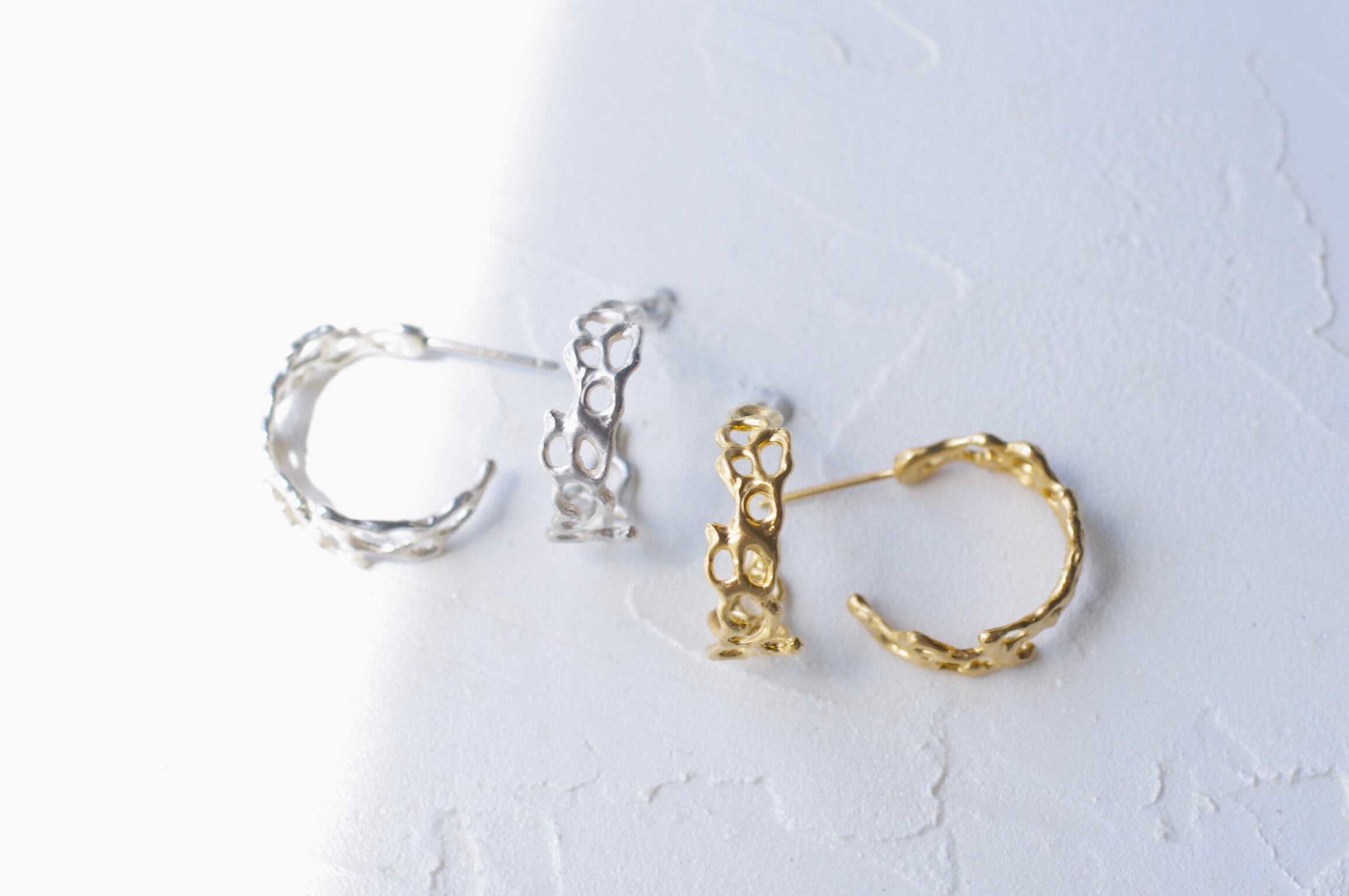 網目模様(meshメッシュ)の細胞のようなデザインのフープピアスです。