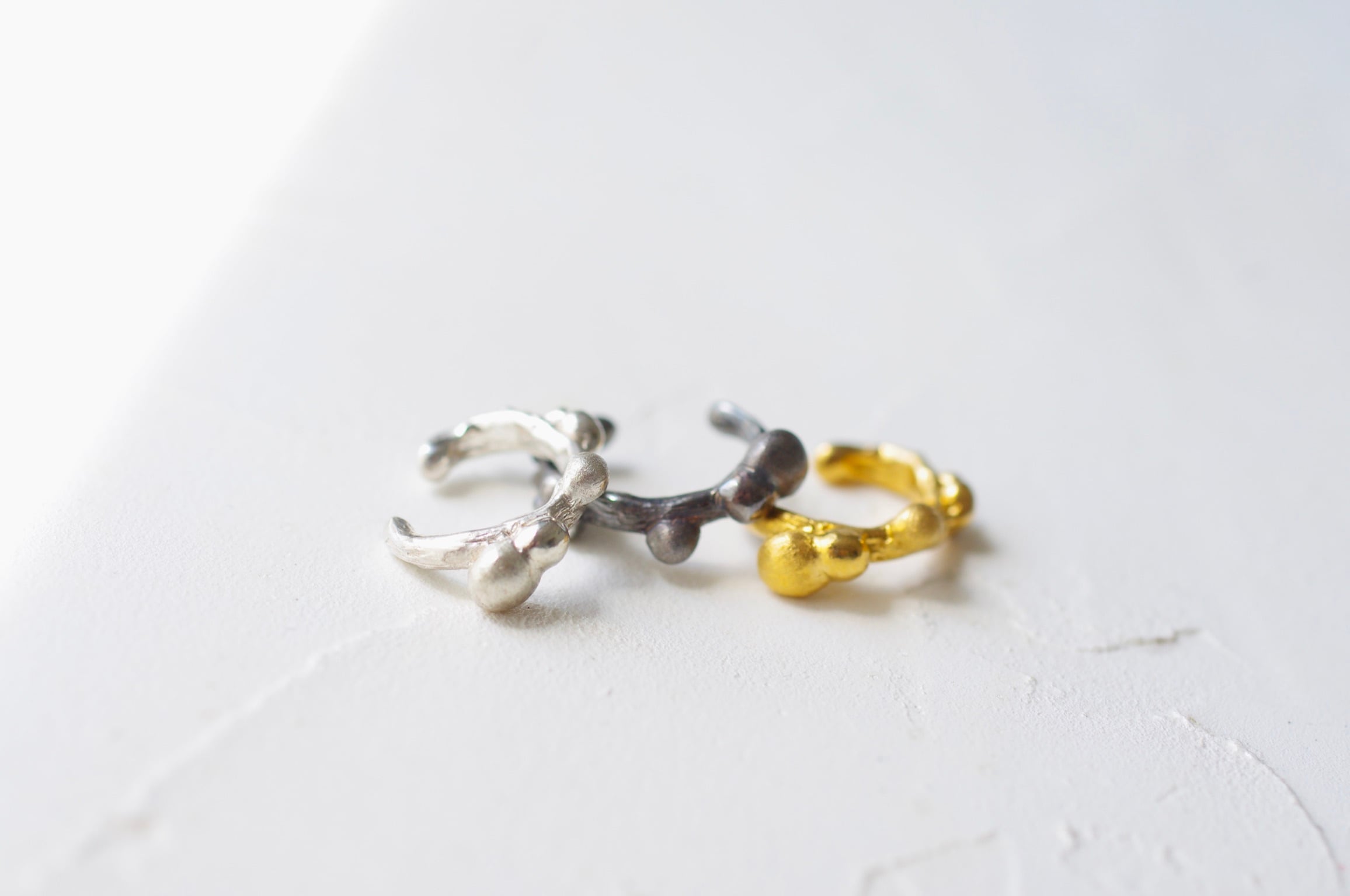 "マメホコリ"という、つぶつぶぷっくりとしたかわいらしい粘菌をモチーフにしたイヤーカフです。