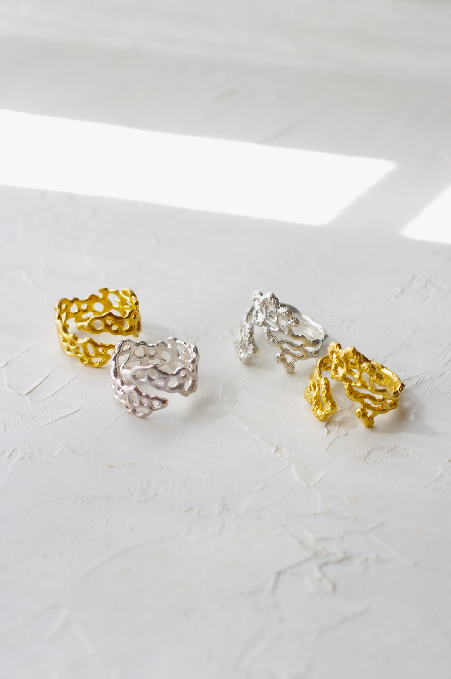 着用すると、指に広がるように、まとわりつくように見えます。