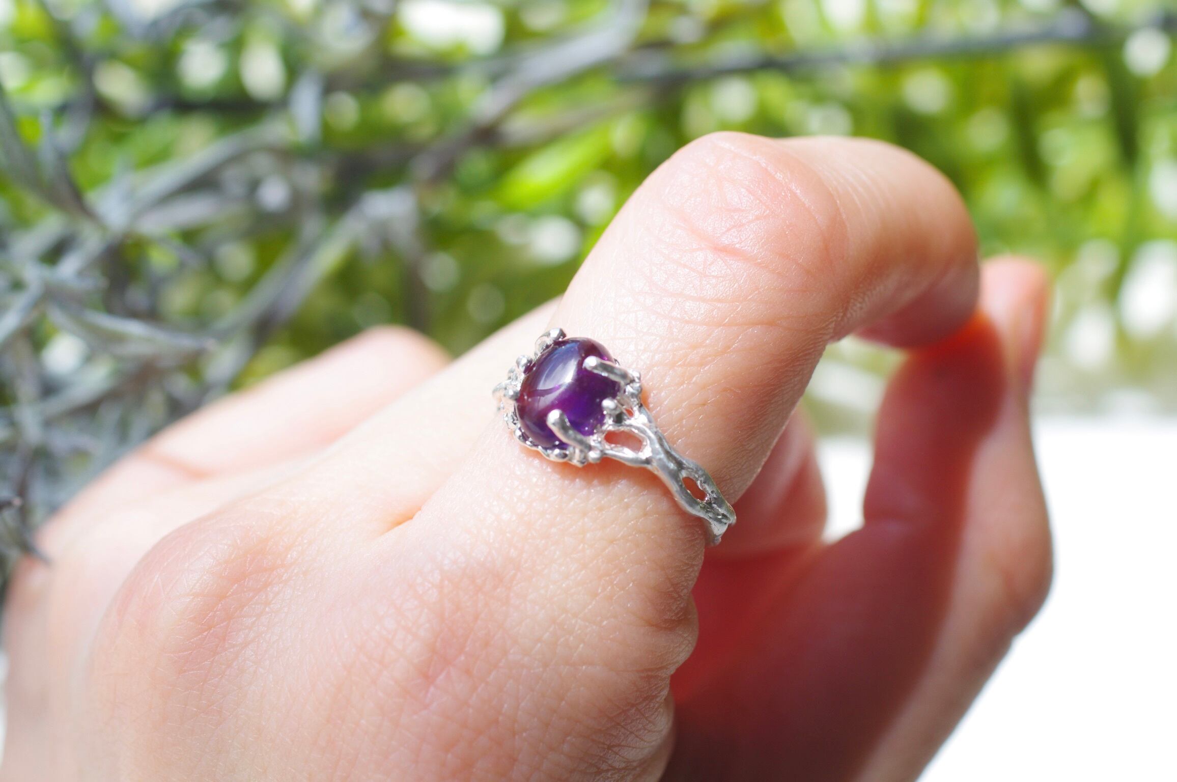mineral transformリング《アメジスト》は、粘菌のアメーバ状の「変形体」のをイメージしたデザインが特徴的な天然石リングです。